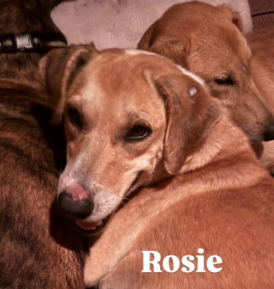 Lucy is a gentle, watchful soul who has spent her life side by side with Moses. She’s calm, steady, and always aware of what’s going on around her. Lucy takes comfort in routine and blossoms when she feels safe.